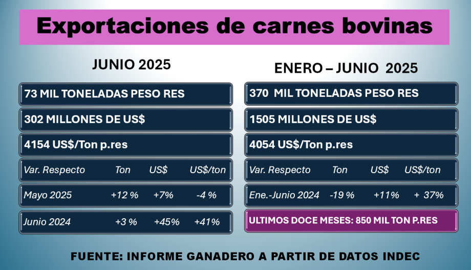 Según un informe de la Cámara de la Industria y el Comercio de Carnes (CICCRA), en el primer semestre de 2025 creció la producción de carne vacuna en la Argentina, pero las ventas al exterior se desplomaron,...