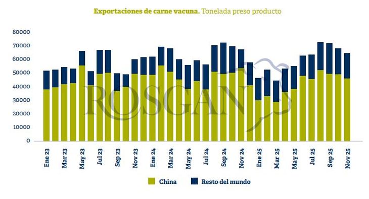 No obstante, al analizar el comportamiento registrado en otros países de la región, se advierte que lo sucedido en Argentina no parece ser un fenómeno aislado. Brasil, principal proveedor del mercado chino, también redujo sus exportaciones en noviembre en torno al 15%, pasando de 42.550 toneladas peso producto en octubre a 36.070 toneladas embarcadas durante el último mes.