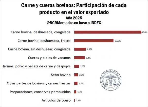 La estructura exportadora del complejo bovino muestra un claro predominio de productos cárnicos: