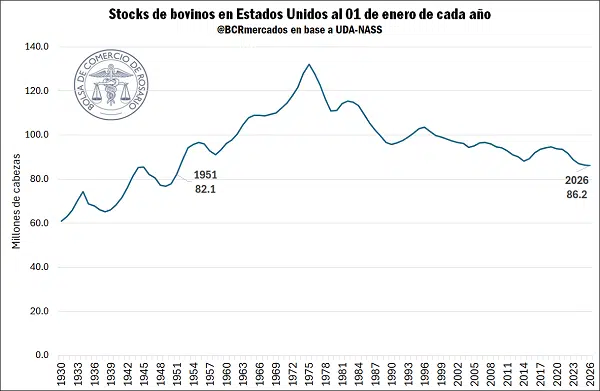- Caída del stock ganadero en EE.UU., en mínimos de 75 años