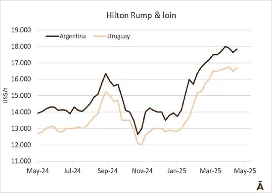 En los últimos 15 días el precio promedio de la carne vacuna argentina exportada a EEUU aumentó US$ 600 por tonelada y en el último mes consolidó un salto de casi US$ 1.000, desde US$ 8.025 a US$ 9.000 ton.