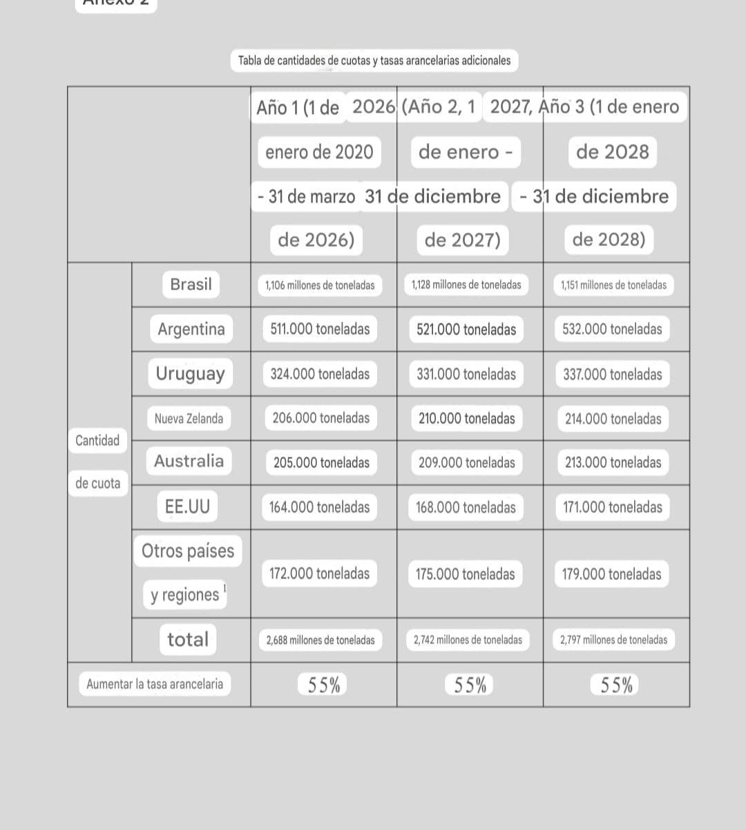 En 2026, Brasil tendrá un cupo de importación de 1,1 millones de toneladas, mientras que Argentina tendrá un límite de aproximadamente la mitad y Uruguay de 324.000 toneladas.