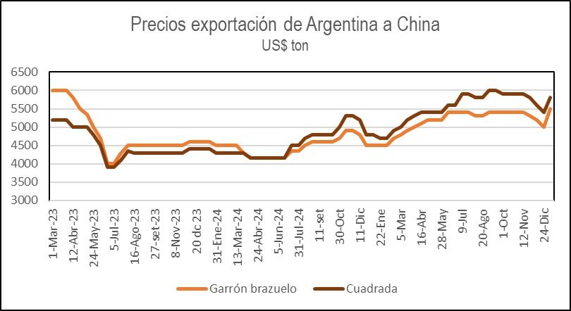 Movimiento hacia arriba en los precios desde China por toma de posición de importadores de ese país luego de la confirmación de las cuotas. Desde la industria local y regional hay dudas sobre si se consolidará este avance en los valores