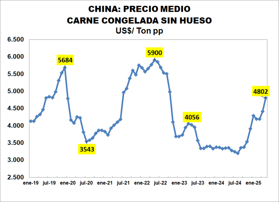 Exportación de carne a China: caen embarques, suben precios…