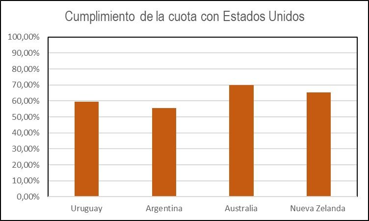 Así surge de los datos de la Aduana estadounidense que releva la carne efectivamente ingresada al país. En el caso de Argentina había completado el 55,65% del cupo de también 20.000 toneladas.